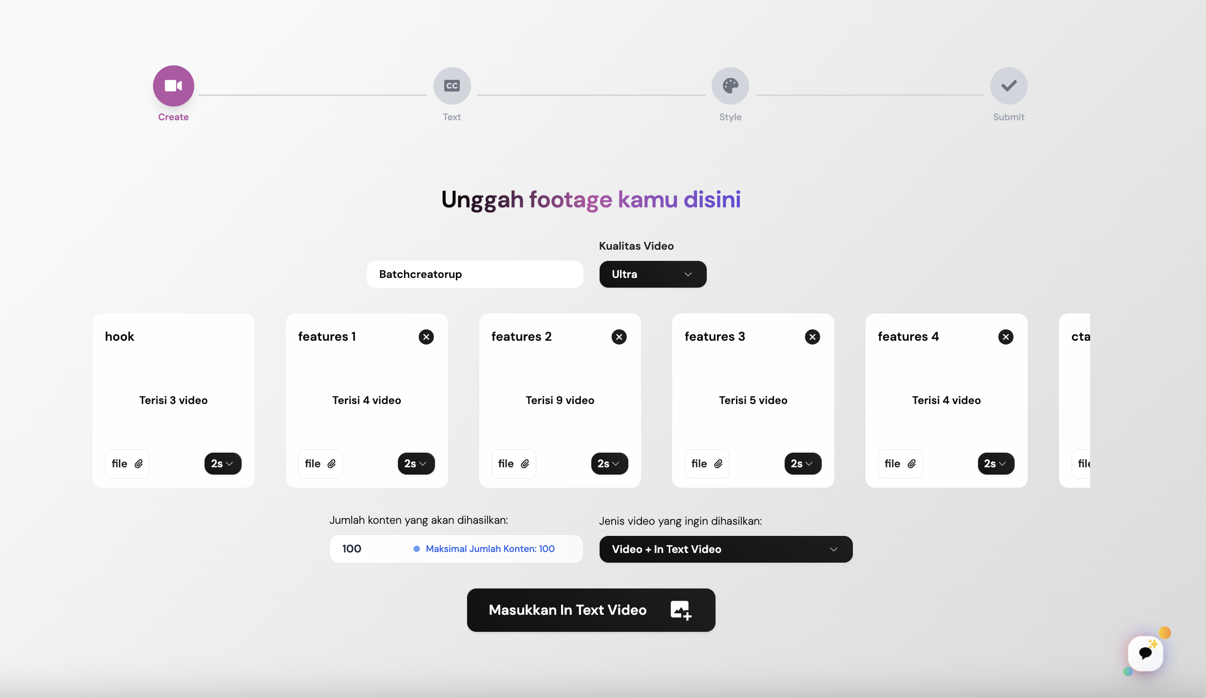 Buat text in video / caption secara instan dibuat berbeda dan unik untuk setiap variasi video, Tidak ada duplikasi.